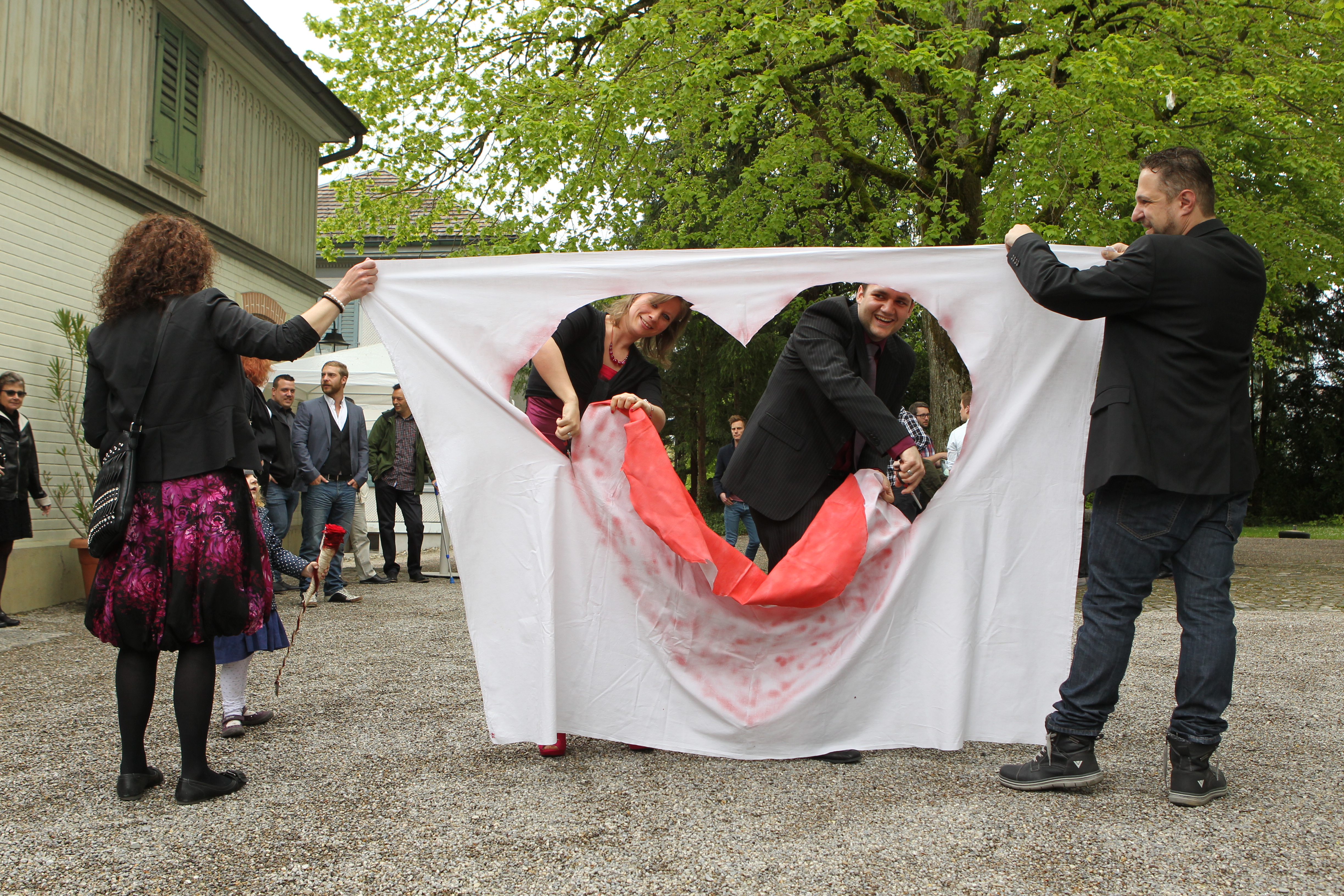 Möglichst einfach sollte sie sein, mit anschliessender Party – unsere Zivilhochzeit. Dafür mieteten wir die Remise im Flawiler Lindengut, bestellten einen Grillmeister, machten Salate und sorgten für Musik. Getraut wurden wir im Ortsmuseum, wo wir anschliessend von euch herzlich empfangen wurden. Schön, dass ihr alle kommen konntet und Danke für die zahlreichen Geschenke ! Nach dem Dessertbuffet von Schwiegermami Jréne, begannen die ersten Trinkspiele bis spät in die Nacht. Noch heute bekommen wir positive Rückmeldungen auf unser Fest und wir freuen uns, dass es euch gefallen hat. Auch wir haben es sehr genossen. Im „Blog“ findet ihr einige Eindrücke vor und nach dem Fest bis hin zur Hochzeit vom 23. Mai und noch weiter. Viel Spass beim Anschauen !